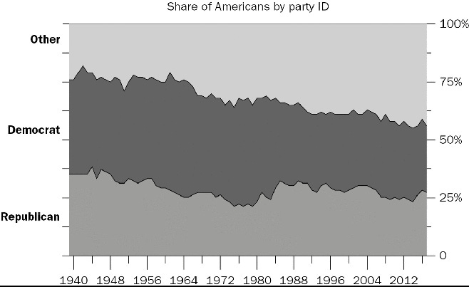 Why is this a new problem, then? Lee Drutman has a story I find mostly convincing: prior to about 1990, politics was only nominally national—ticket-splitting and inter-party ideological overlap was common enough that America had a “four party” system. Such a system meant that—say—Northern Republicans and Southern Democrats could both reap the political success of a compromise, forcing other parts of their respective parties to the table if they did not want to be left behind.